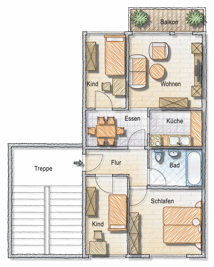 Highlight ist der schöne, vergrößerte Balkon …